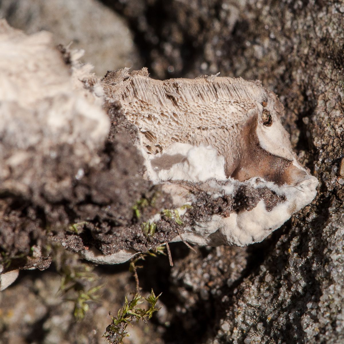 Op 10 april heb ik twee foto's geplaatst van een zwam/paddenstoel die ik op een kerkhof had ontdekt. Inmiddels is de zwam die over een boomstronk groeide, verdroogd en verbleekt. Ik heb er een stukje vanaf gebroken en misschien kan de zwam nu wel op naam gebracht worden m.b.v. deze derde foto van de...