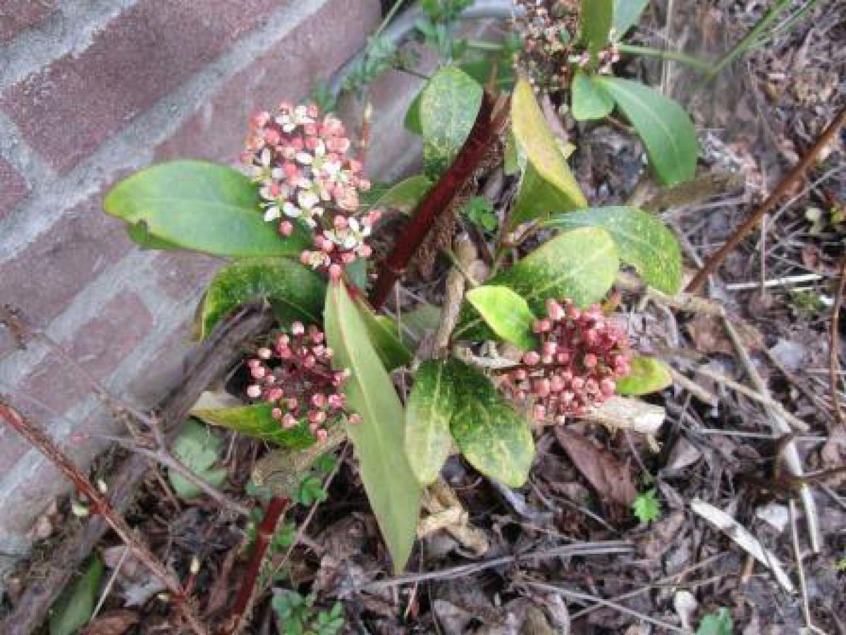 Achter in mijn tuin staat deze struik in bloei. Hij ziet er erg miezerig uit.