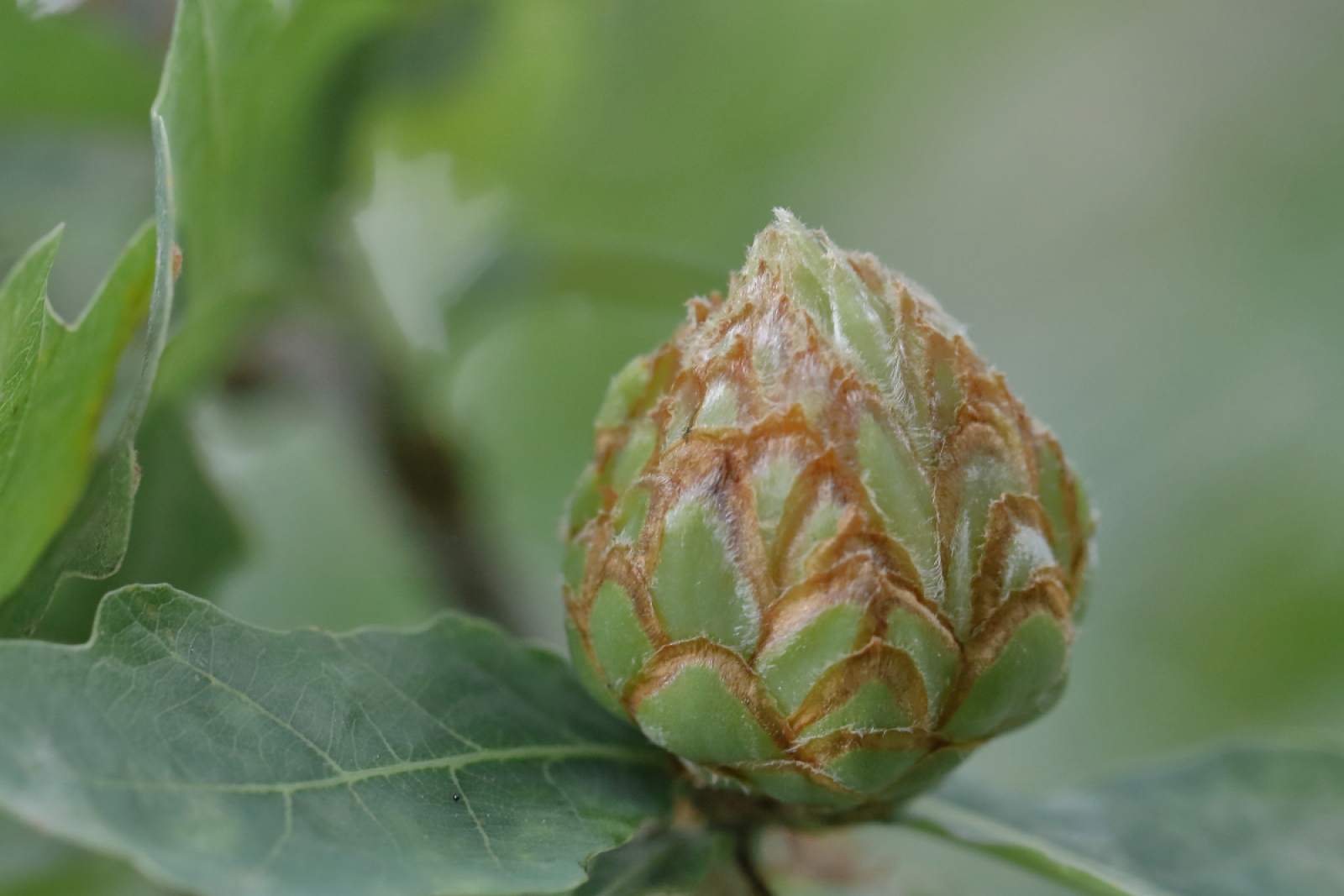 De wesp is de veroorzaker van de ananasgal bij de zomereik en wintereik. De wesp legt één ei per bladknop. De schutbladen van de bladknop groeien dakpansgewijs uit tot een 2-3 cm op een dennenappel lijkende gal. Vanaf eind augustus kunnen de ananasgallen in hun geheel van de boom vallen maar het is ook mogelijk dat de knop blijft zitten en zich in de herfst opent waarop de binnengal uit de knop valt met daarin de larve van de galwesp. De vrouwelijke galwespen uit de binnengal komen in het daaropvolgende voorjaar tevoorschijn en leggen hun onbevruchte eitjes aan de basis van de mannelijke bloeiwijze van de eik. Op deze bloeiwijze ontstaan witharige, ovale 2–3 mm grote gallen waaruit mannelijke en vrouwelijke galwespen komen. De gallen verkleuren bij het ouder worden van lichtgroen naar bruin.