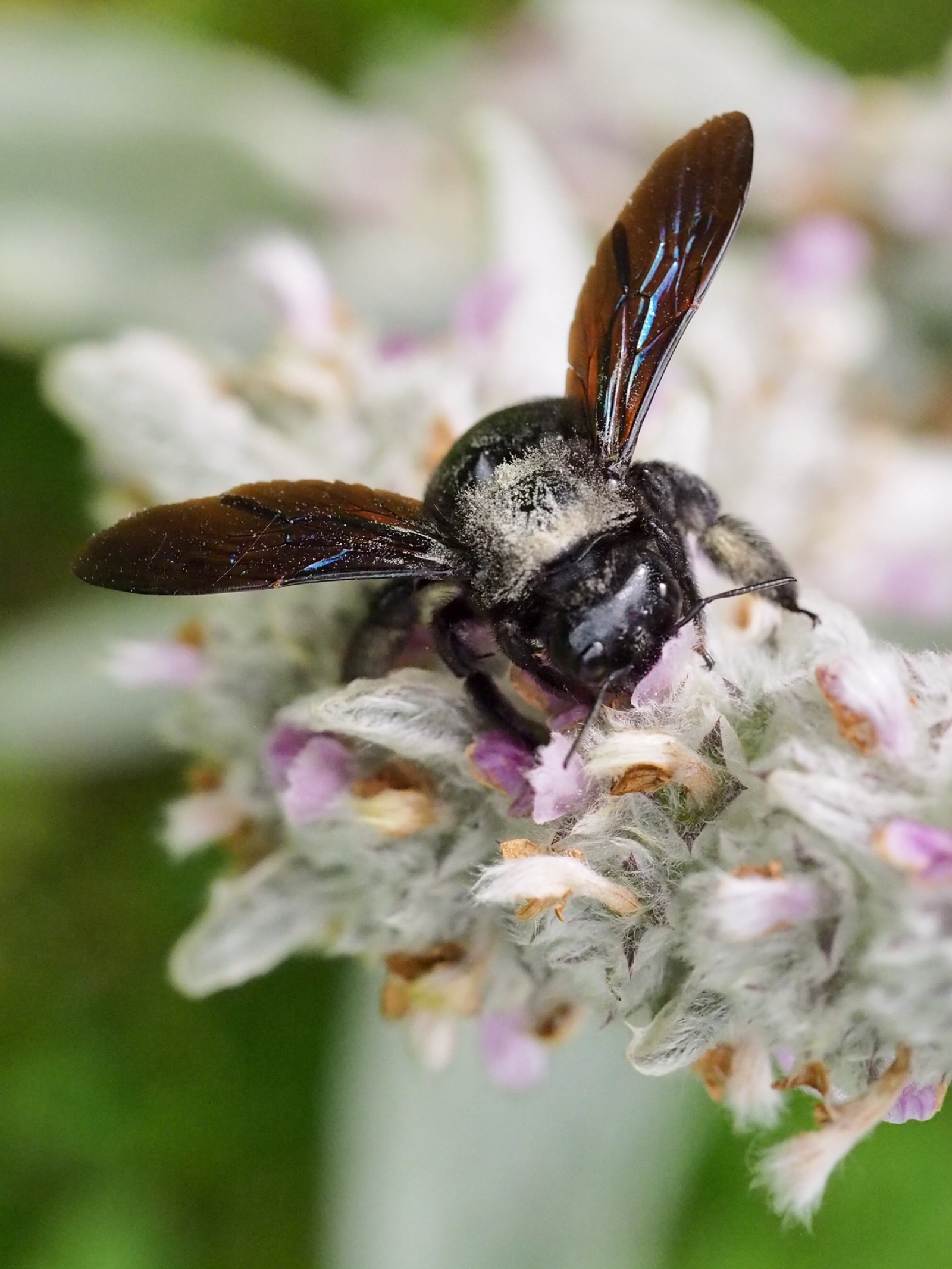 De blauwzwarte houtbij is een fascinerende bij om te zien en om te horen. Min of meer kolossaal met zijn 2 tot 3 cm lang. Deze solitaire bij zet zijn eitjes af in net afgestorven bomen. Daar komt zijn naam ook vandaan. In Nederland beperkt te zien.