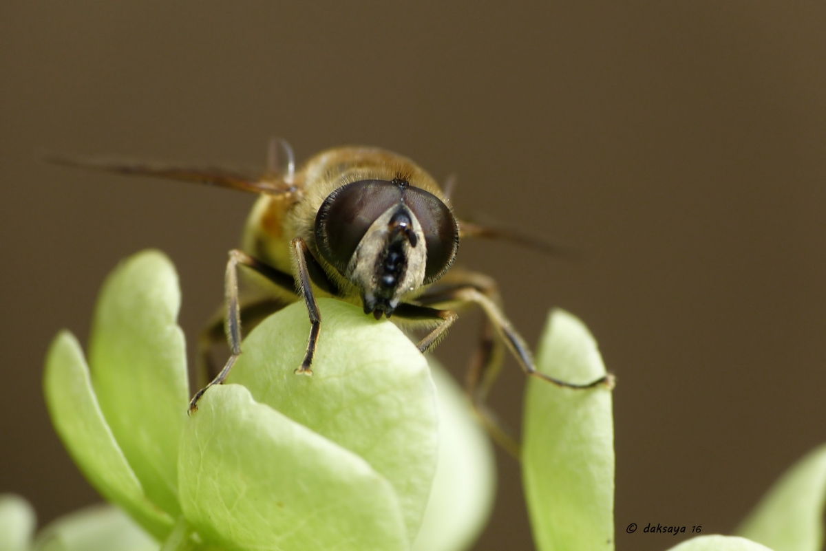 Alles aan de Nederlandse naam blinde bij is onjuist: dit insect is ondanks de naam geen bij maar een zweefvlieg en is al helemaal niet blind. De naam komt waarschijnlijk voort uit het feit dat deze soort wel erg op een bij lijkt maar niet kan steken. Daarnaast heeft de blinde bij rijen haren op zijn ogen wat mogelijk tot de gedachte leidde dat hij blind was.
