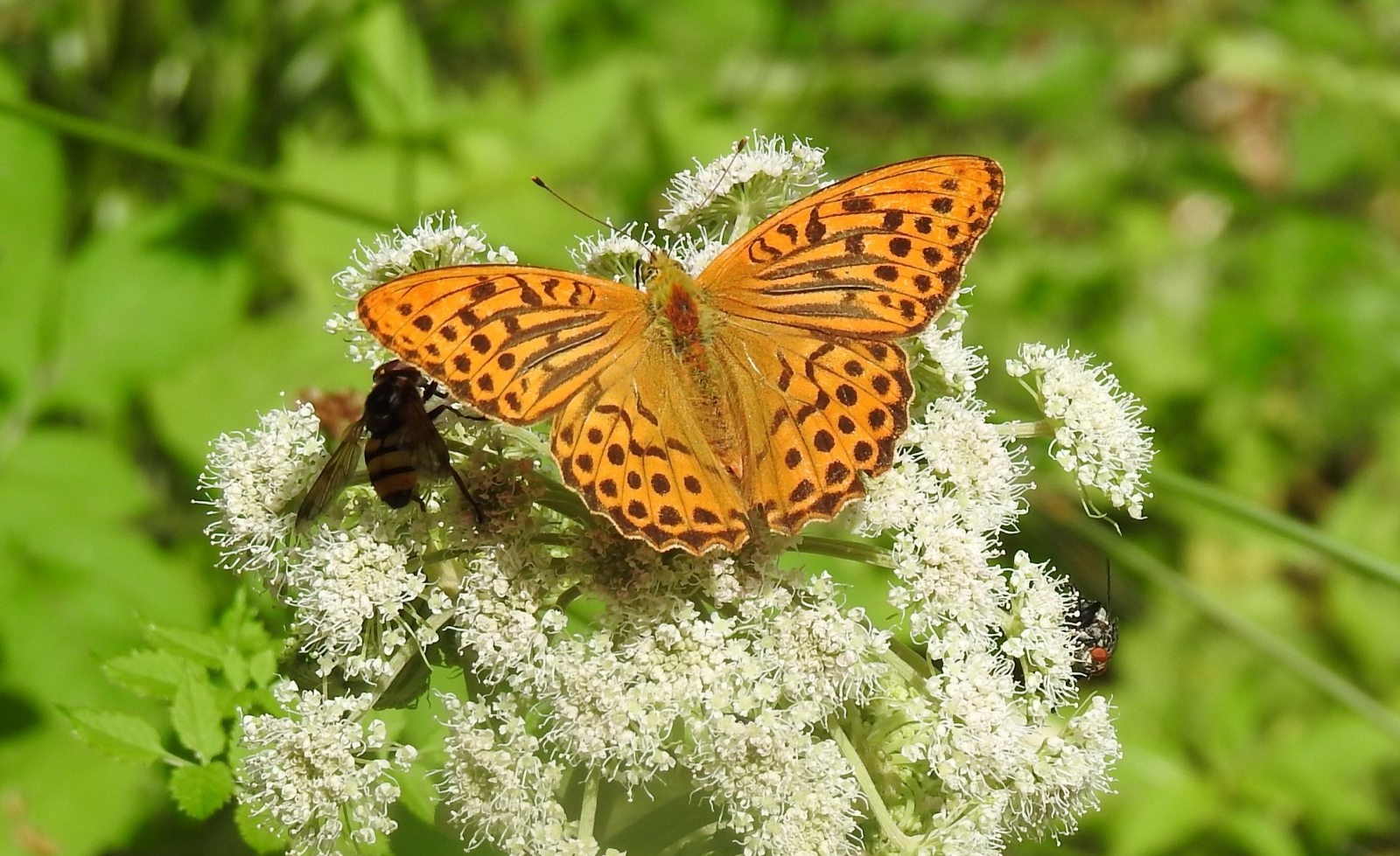 Braamparelmoervlinder op de grote berenklauw