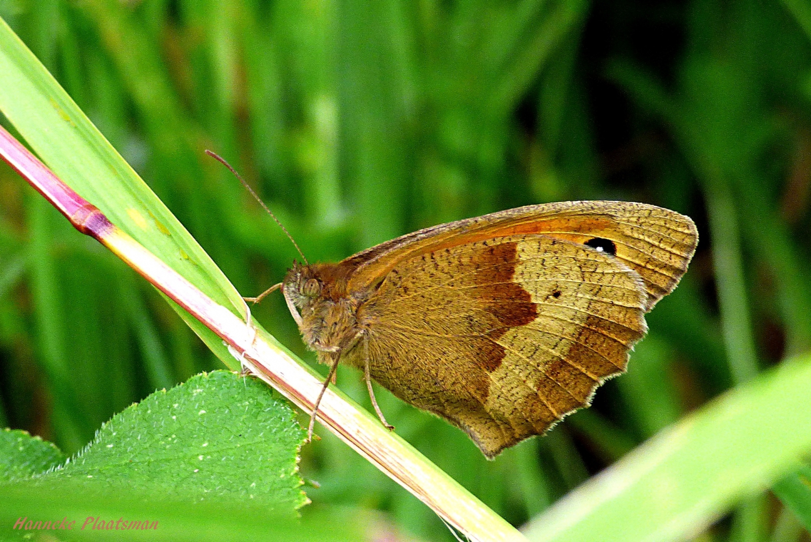 Bruin zandoogje in berm.