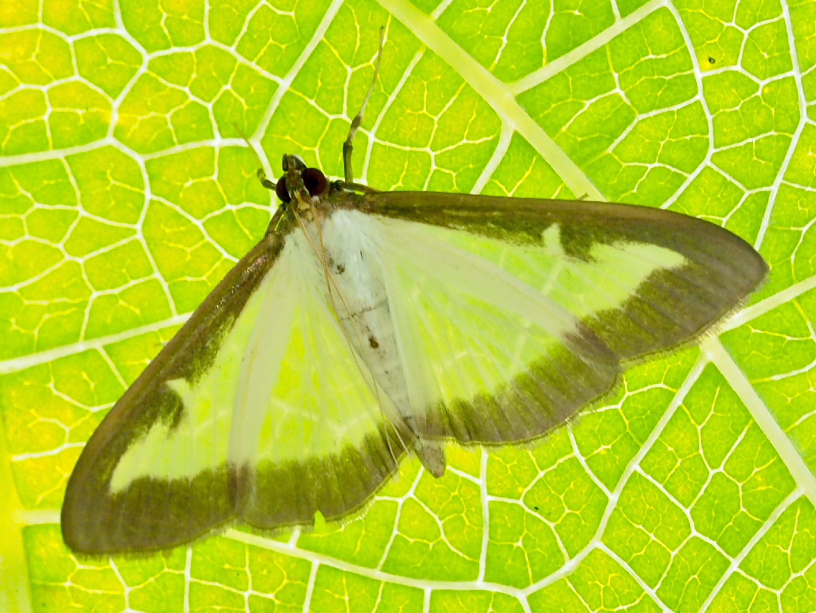 De zon scheen door het blad en daar tegen aan geplakt deze buxusmot, vandaar het wat wonderlijke lichteffect