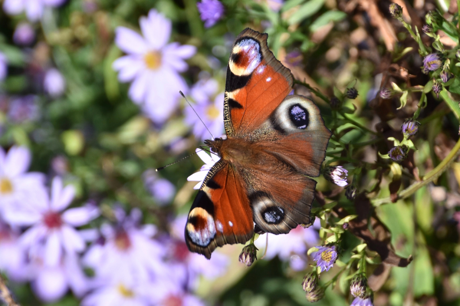Mooi op de Herfstasters, daar vinden ze nog wel voedsel op de bloemen welke in de herfst bloeien.