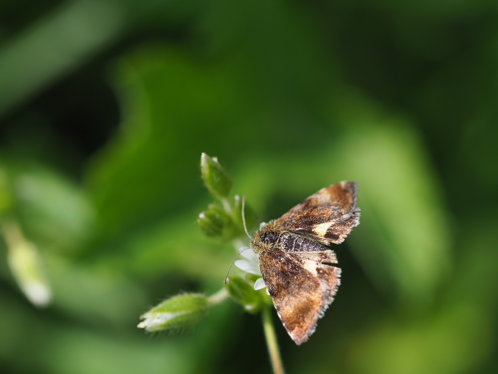 Dat kan ik me voorstellen. Het muntvlindertje heeft wel meerdere vlekjes op de vleugels en is scherper getekend. Ik houd het op een dwerghuismoeder, maar misschien is dit toch een sterk verweerd muntvlindertje...(?) Een mooie opname!