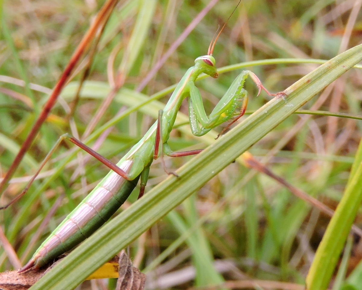 Deze sprinkhaan eet vele soorten insecten. Als hij zit te wachten op een prooi, heeft hij zijn vangpoten gevouwen. Aan deze "biddende" houding heeft hij zijn naam te danken. Aan de binnenzijde van deze poten zitten scherpe stekels waarmee de prooi wordt vastgeklemt en doorboort.