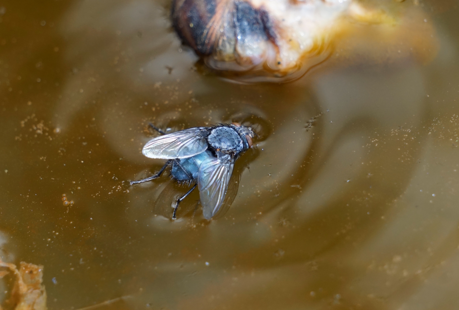Zag deze vlieg in het water spartelen. Kon niet voor- of achteruit. Even op de foto en daarna uit het water gevist.