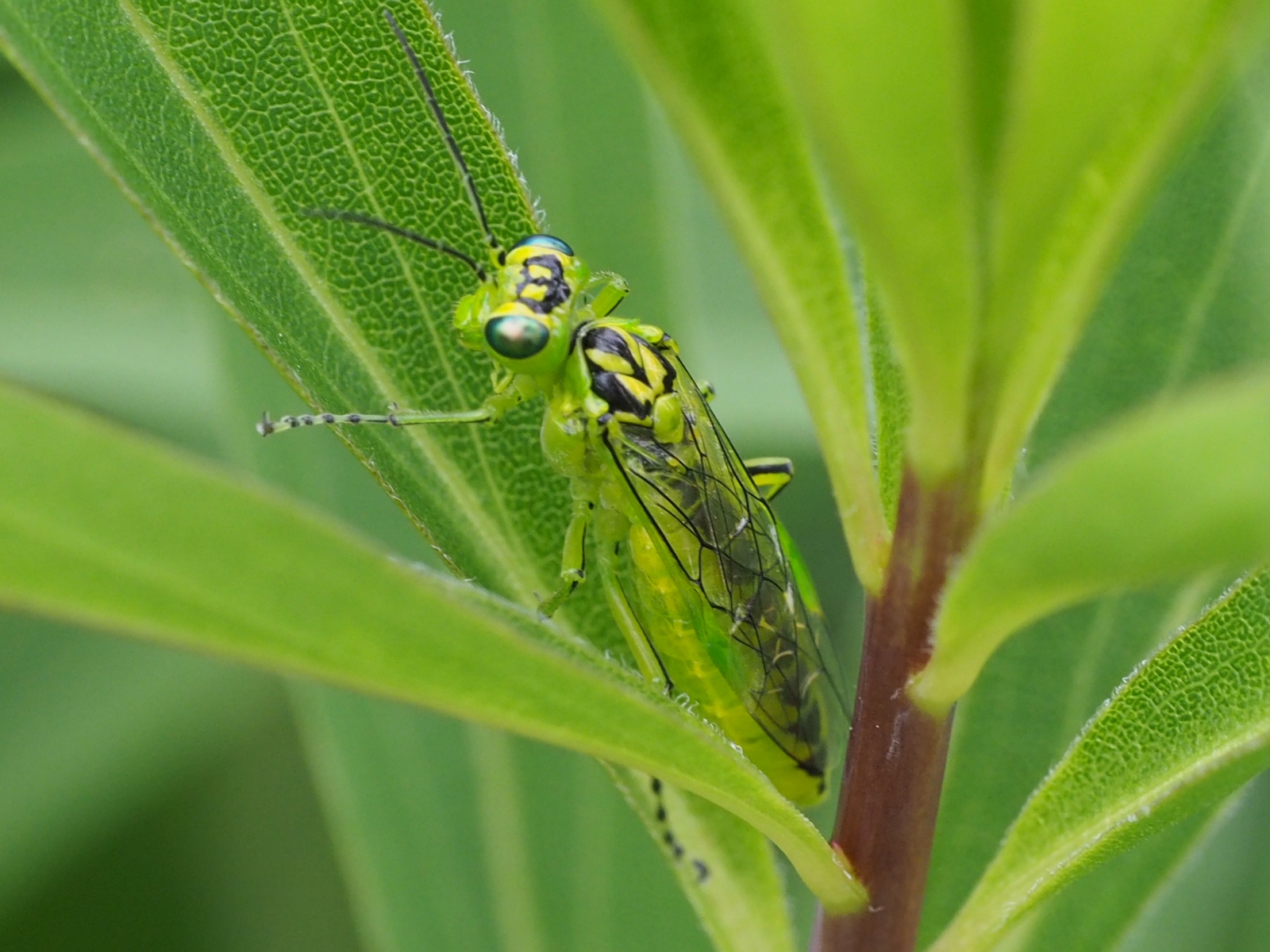 De groene bladwesp is een plaatje van een wesp. Grappig om te zien dat ik hem steeds weer op dezelfde plek tref!