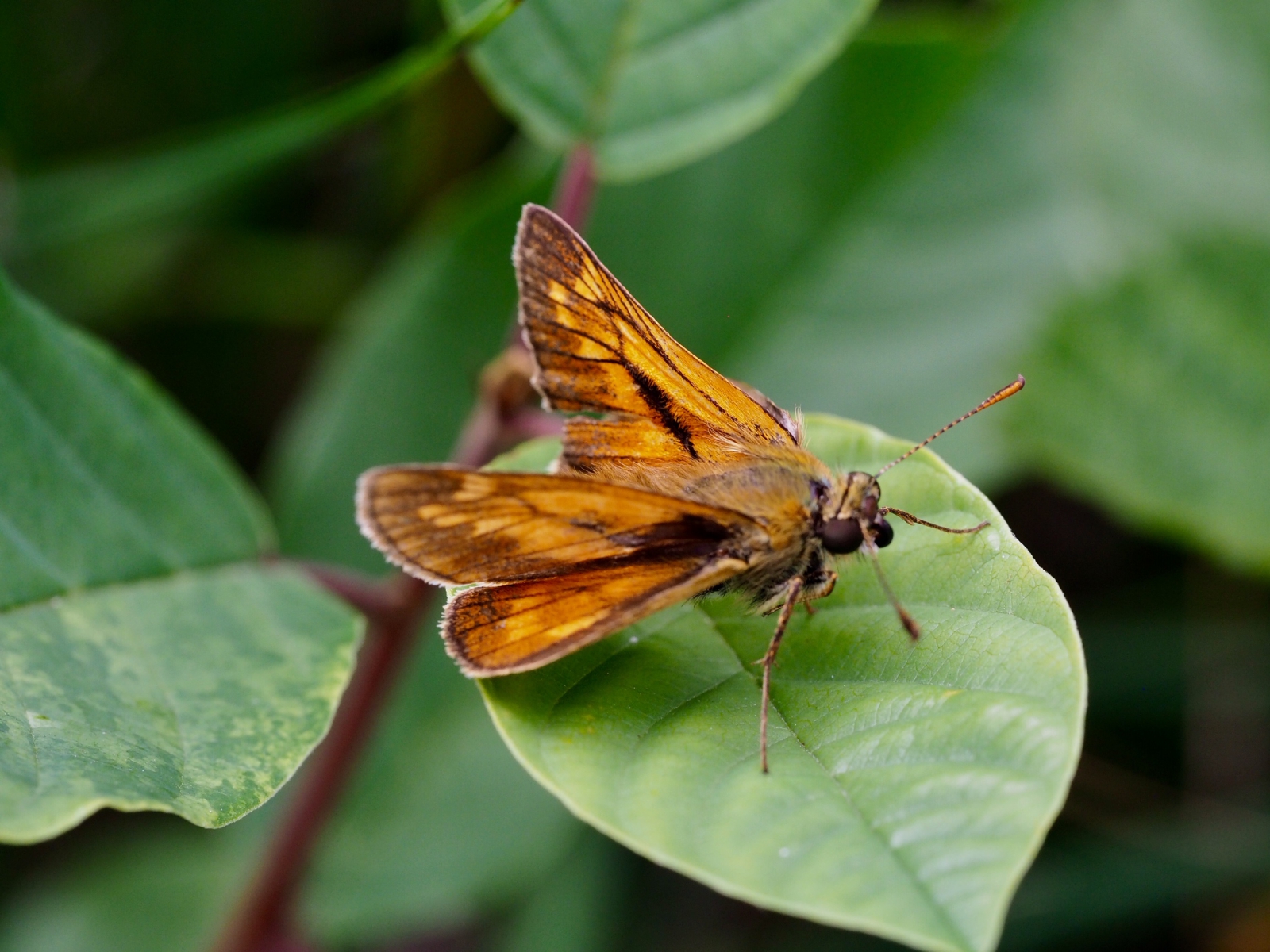Het groot dikkopje is duidelijk een slagje groter, heeft kleine haakjes op de voelsprieten en wat meer tekening. Ik durf niet te zeggen, mannetje of vrouwtje....