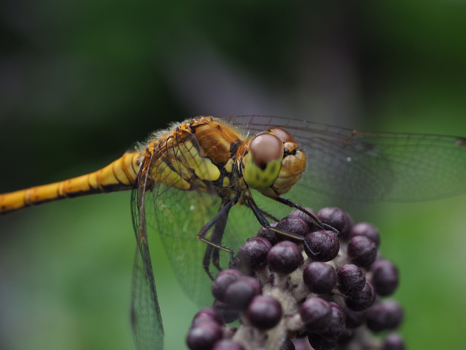Het is een jong mannetje Bruinrode heidelibel ( Sympetrum striolatum ).