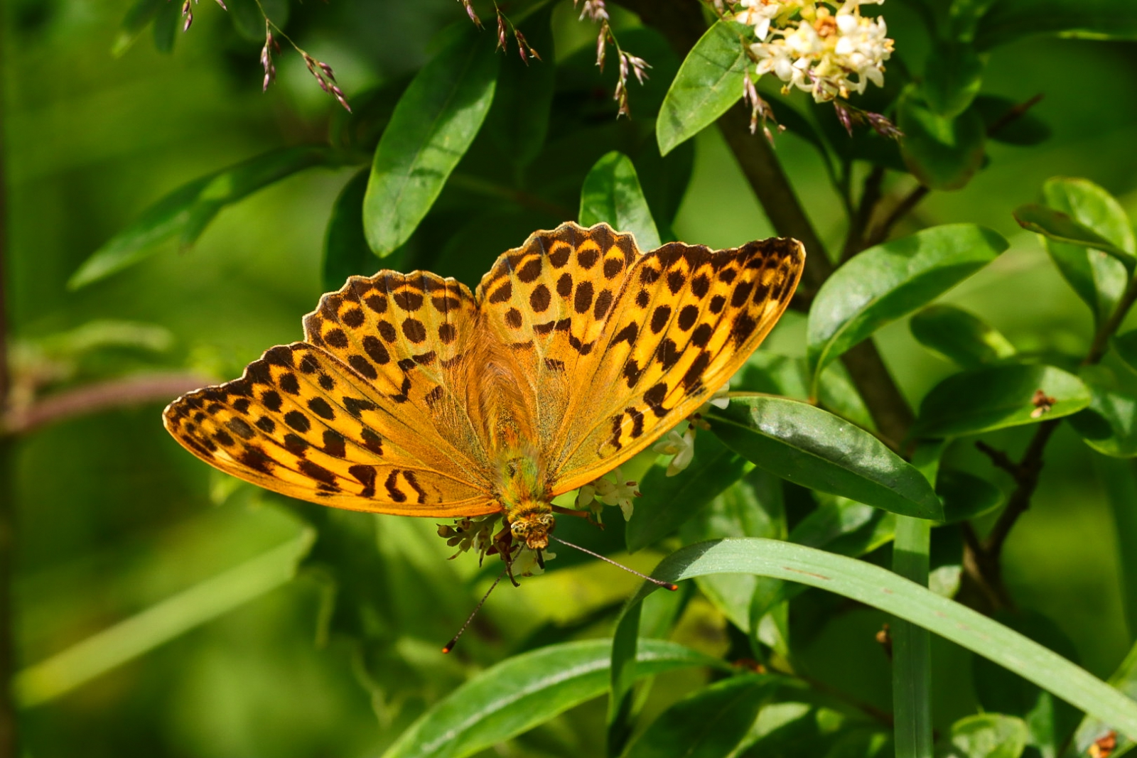 Wanneer de eerste keizersmantels gaan vliegen, zijn dat vaak mannetjes. De vrouwtjes komen iets later. En inderdaad: in Meijendel vlogen, twee dagen nadat ik foto's van mannelijke keizersmantels deelde, inmiddels ook enkele vrouwtjes. Ze zijn wat kleiner, iets lichter van kleur dan de mannetjes en de dikke strepen op de bovenkant van de vleugels ontbreekt bij hen.