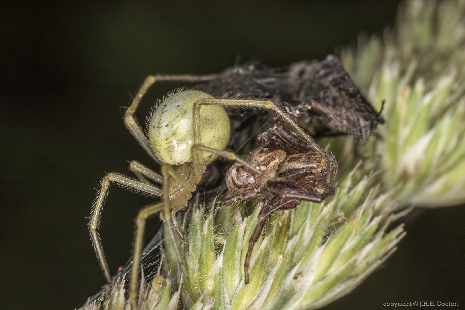 Knap kogelspinnetje heeft er een enorme maaltijd aan.