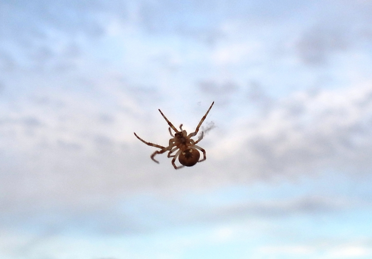 Kruisspin begon net aan zijn nieuwe web. Hij had nog maar een paar draden gespannen. Macro opname