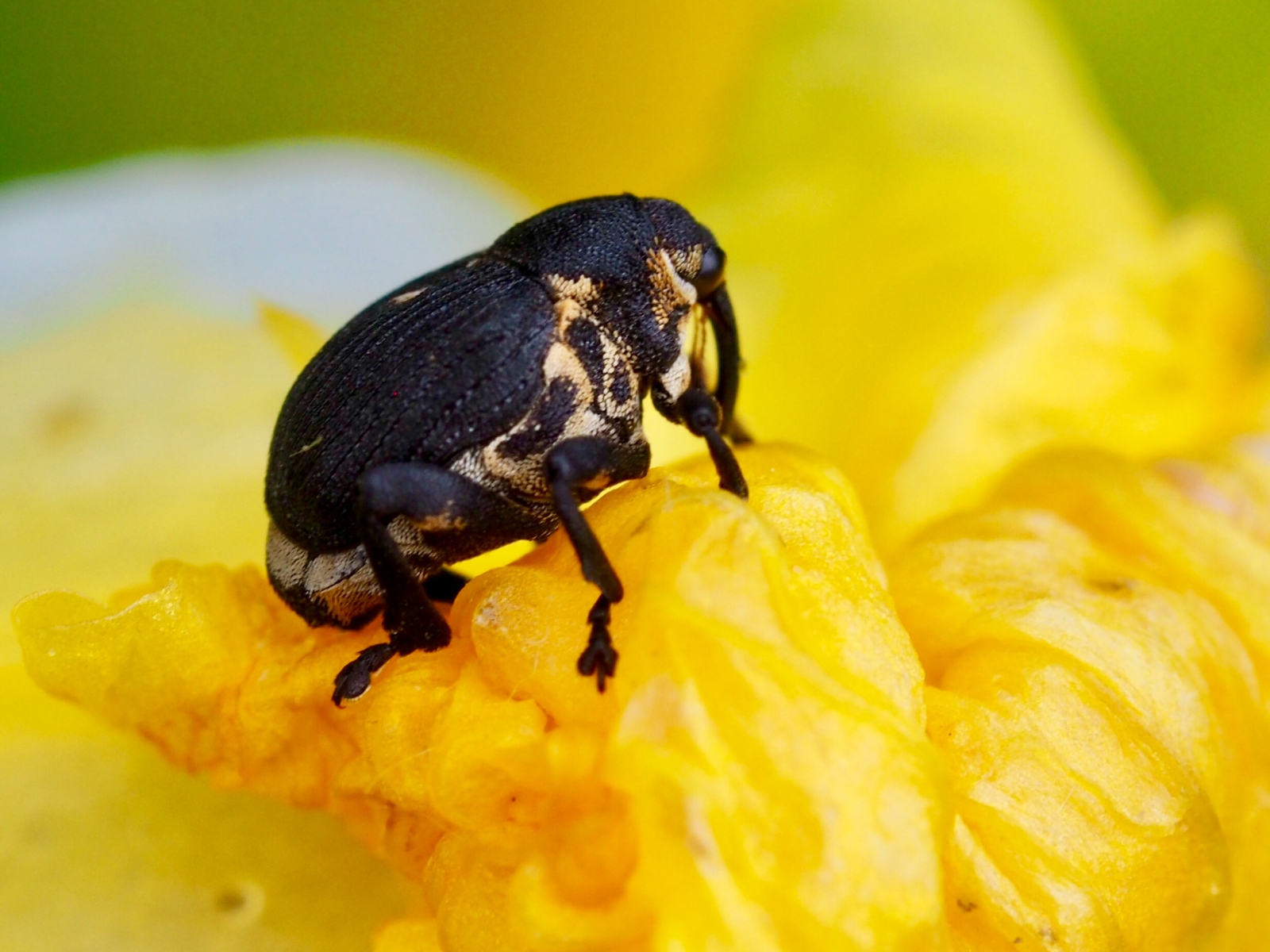 De koddige en zeer gedrongen lissnuitkever of ook wel lissenboorder genoemd. De witte vlekjes aan de voorzijde bepalen ook wat de Latijnse naam, punctum betekent punt en album betekent wit