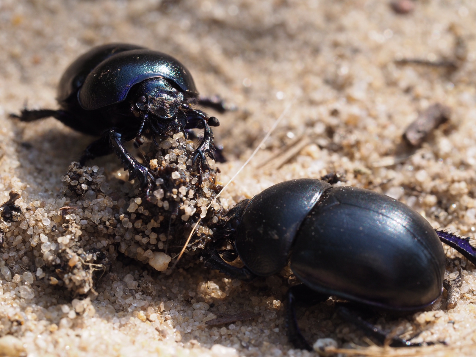 Twee mestkevers zorgen dat de onlasting van een hond keurig wordt verwerkt