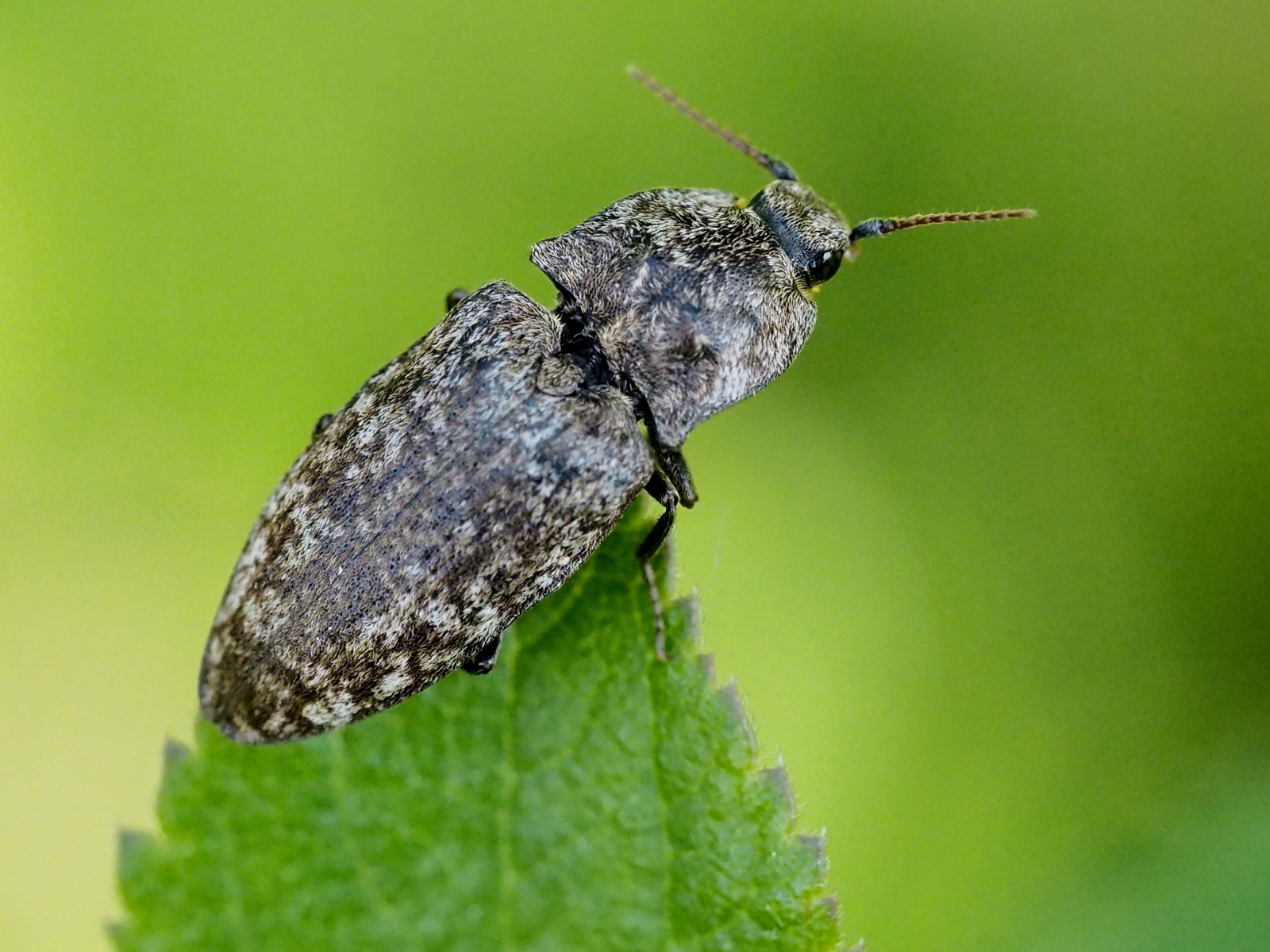De muisgrijze kniptor die bijna een knipoog lijkt te maken
