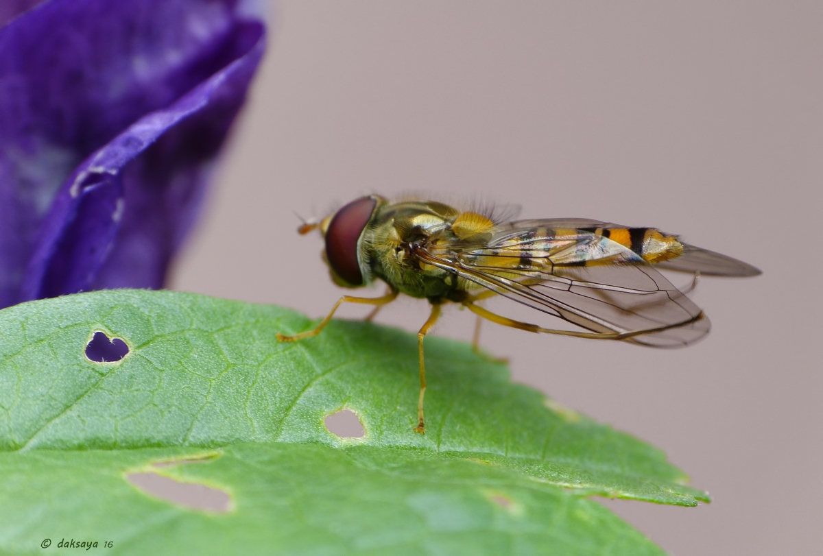 Pyjamazweefvlieg strijkt zijn vleugels glad.