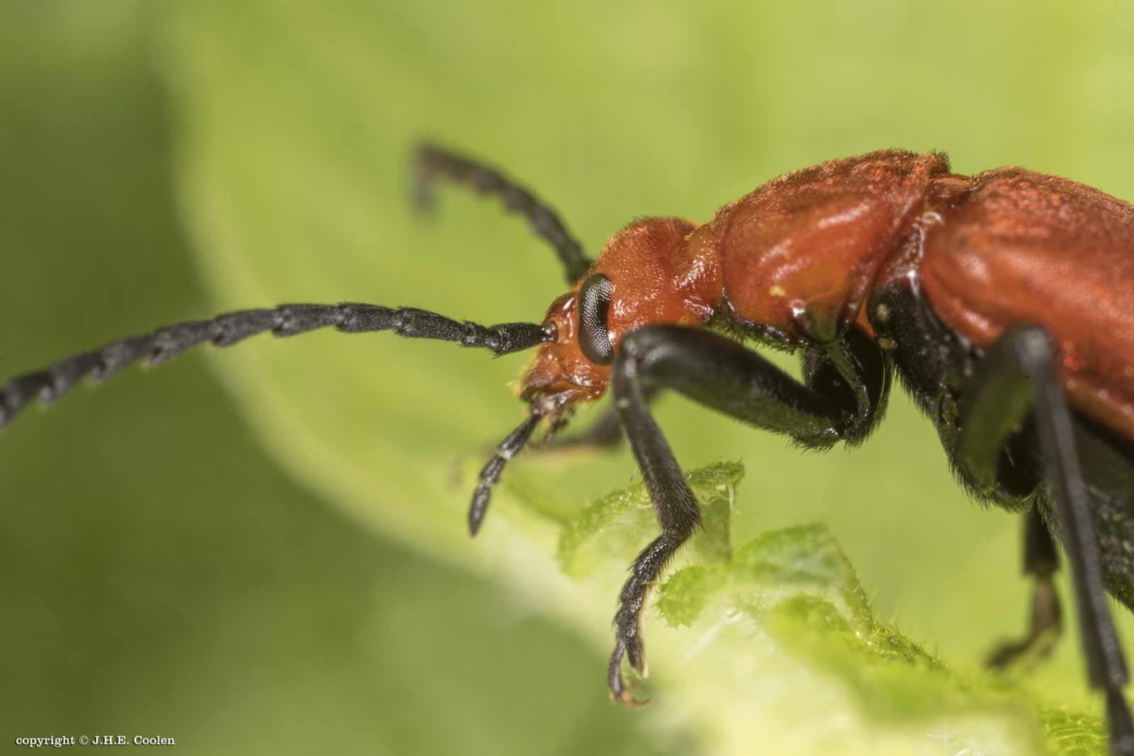Roodkopvuurkever (Pyrochroa serraticornis). Gr. Jan