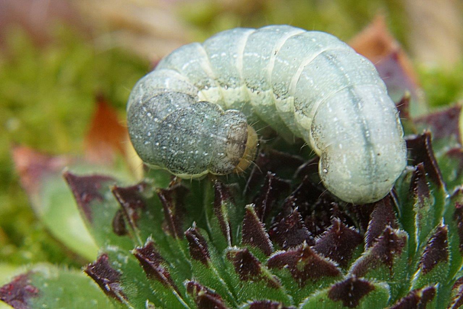 Een ongewone plaats om te rusten, maar wel een mooie opname van deze rups.
