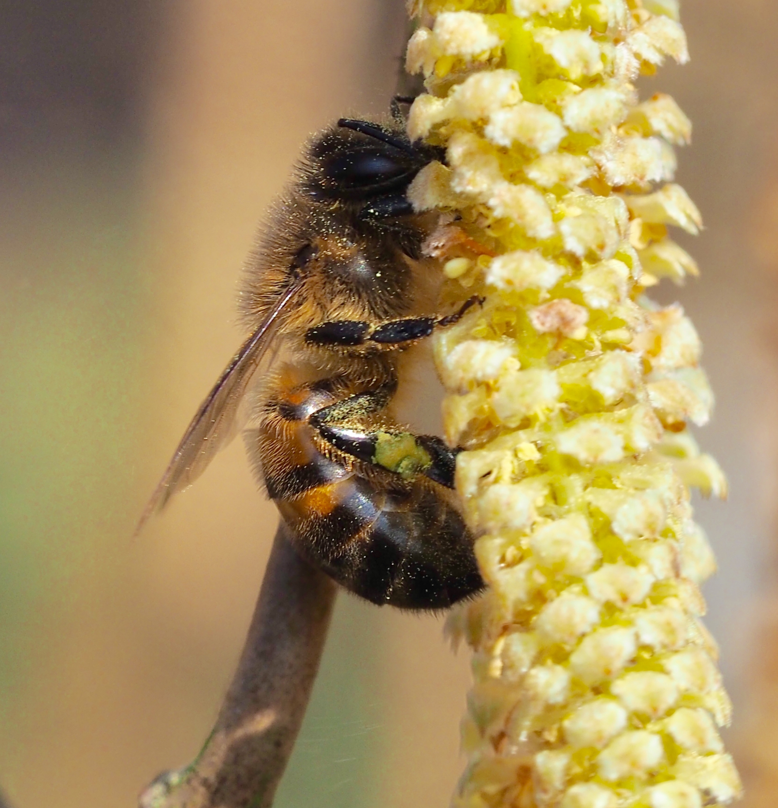 Bij die zich laaft in de toverhazelaar