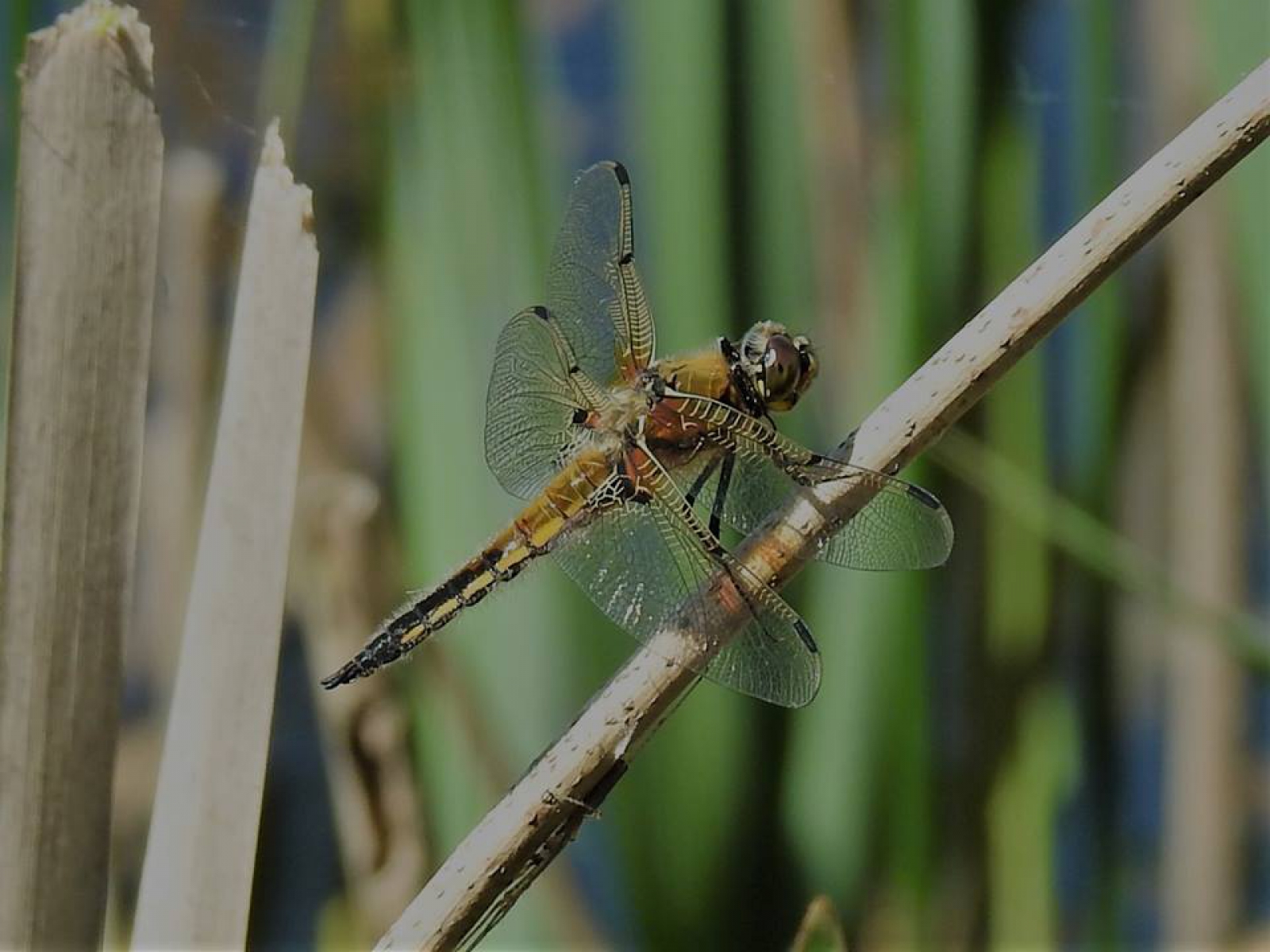 De viervlek is een middelgrote libel met een vrij breed achterlijf dat taps toeloopt en in een punt eindigt. Mannetjes en vrouwtjes zijn vergelijkbaar getekend, maar onderscheiden zich in de achterlijfaanhangsels. De achtervleugels hebben een donkere vlek in de basis; de aders in de donkere vlekken zijn opvallend geel.