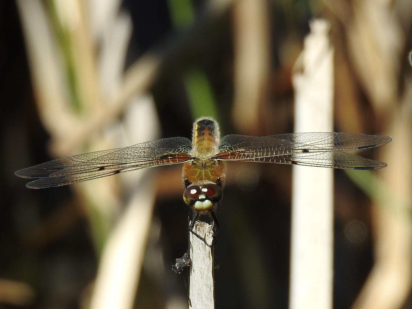 De viervlek is een middelgrote libel met een vrij breed achterlijf dat taps toeloopt en in een punt eindigt. Mannetjes en vrouwtjes zijn vergelijkbaar getekend, maar onderscheiden zich in de achterlijfaanhangsels. De achtervleugels hebben een donkere vlek in de basis; de aders in de donkere vlekken zijn opvallend geel. Halverwege de voorranden van de vleugels staat een donker vlekje, dat niet voorkomt bij andere libellensoorten.