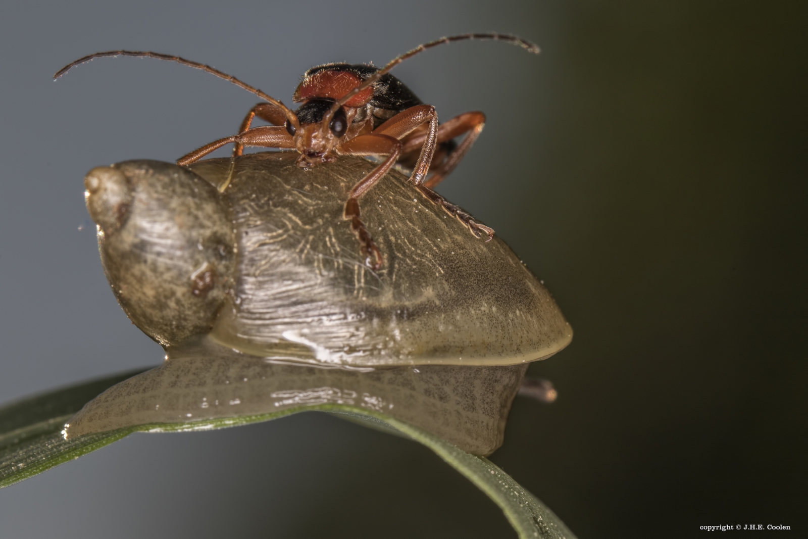Bijzondere combinatie. Soldaatje wilde ook wel eens weten hoe hard een slakkengangetje is.