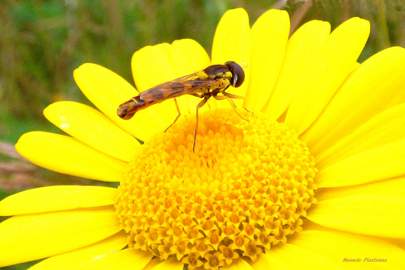 Zweefvlieg op gele bloem.