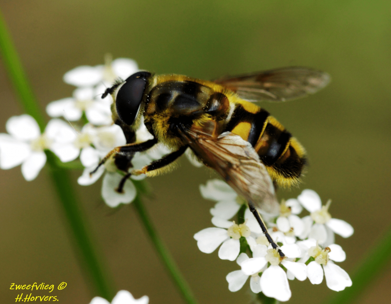 Leuke opname van deze Doodskop- of Doodshoofdzweefvlieg (Myathropa florea)