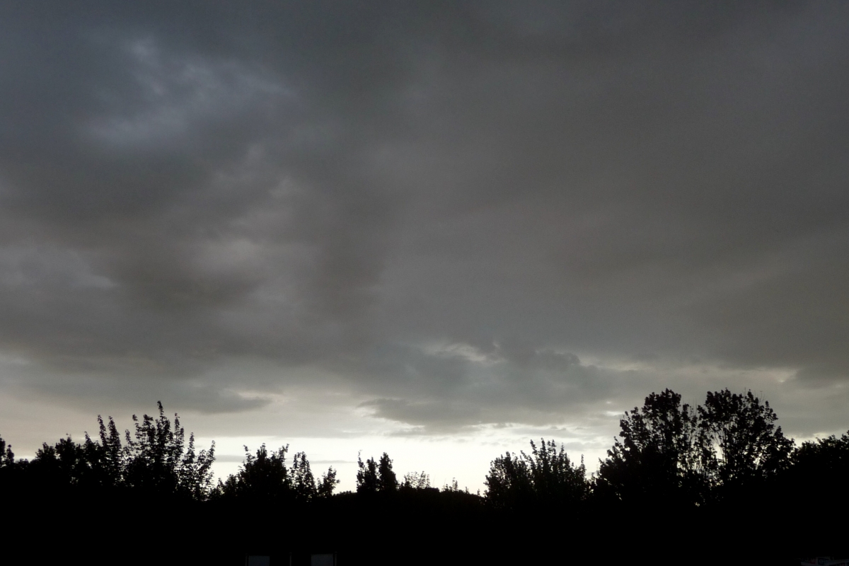 Vanavond om kwart over acht werd het heel donker en begon het te regenen. Vanaf ons balkon genomen.