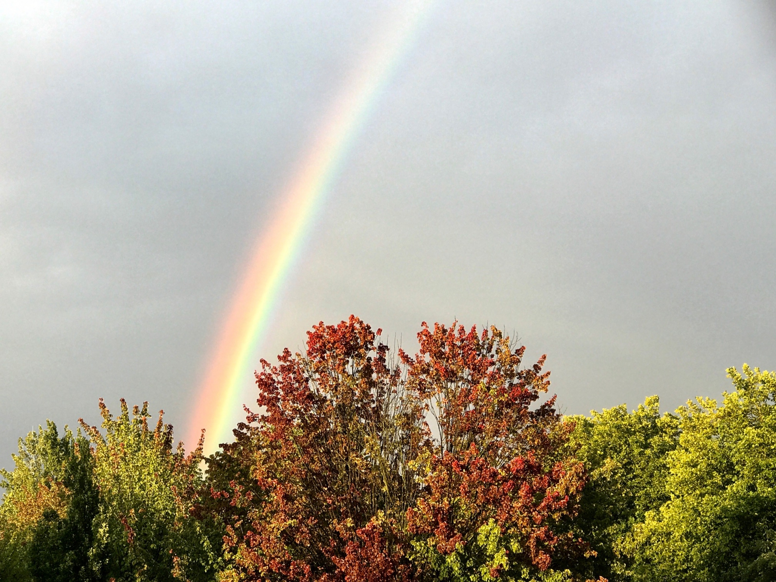 Toen de zon kwam, verscheen de regenboog. Vanaf balkon genomen.
