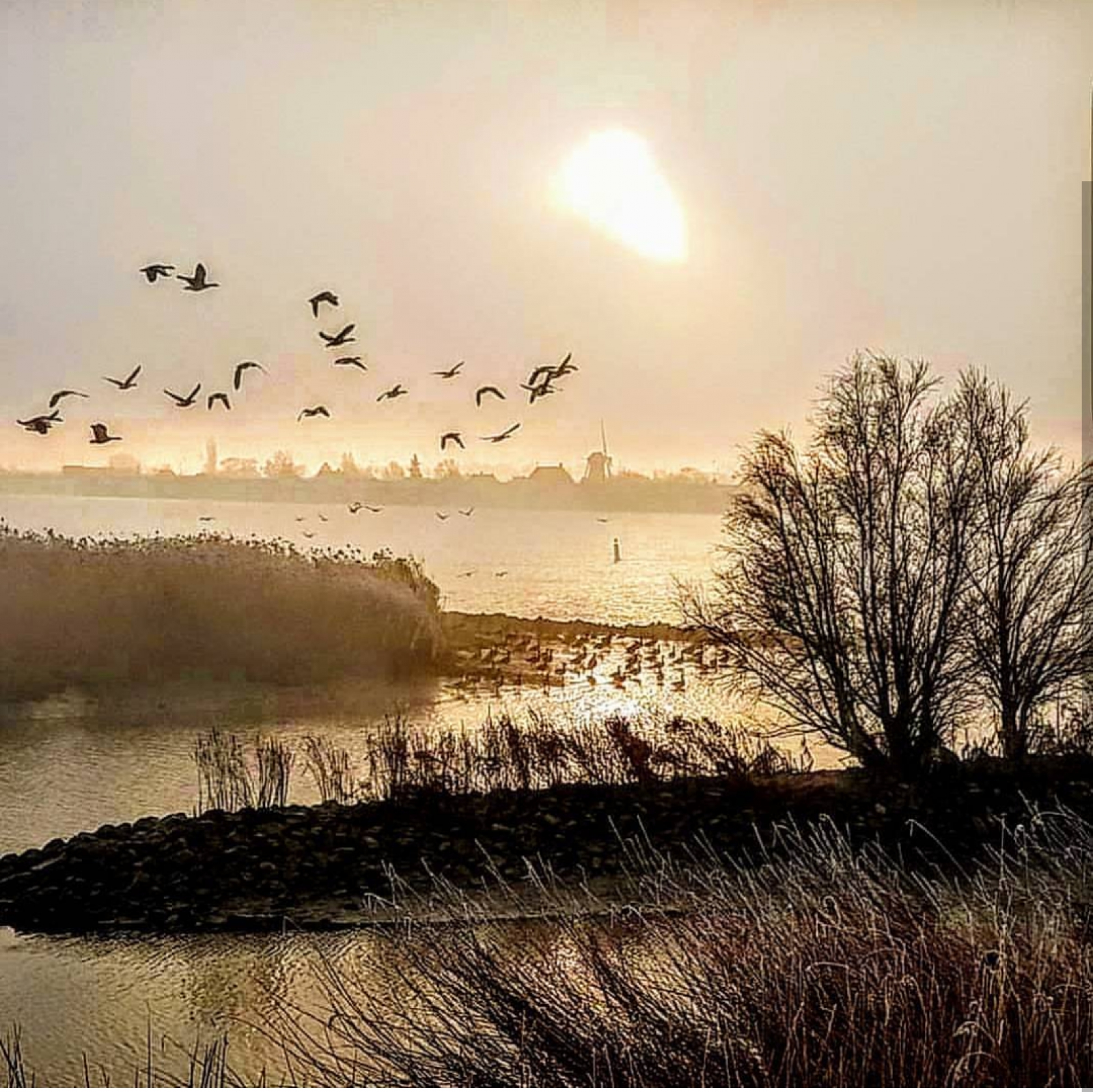 Mist langs de lek gezien vanaf lekkerkerk