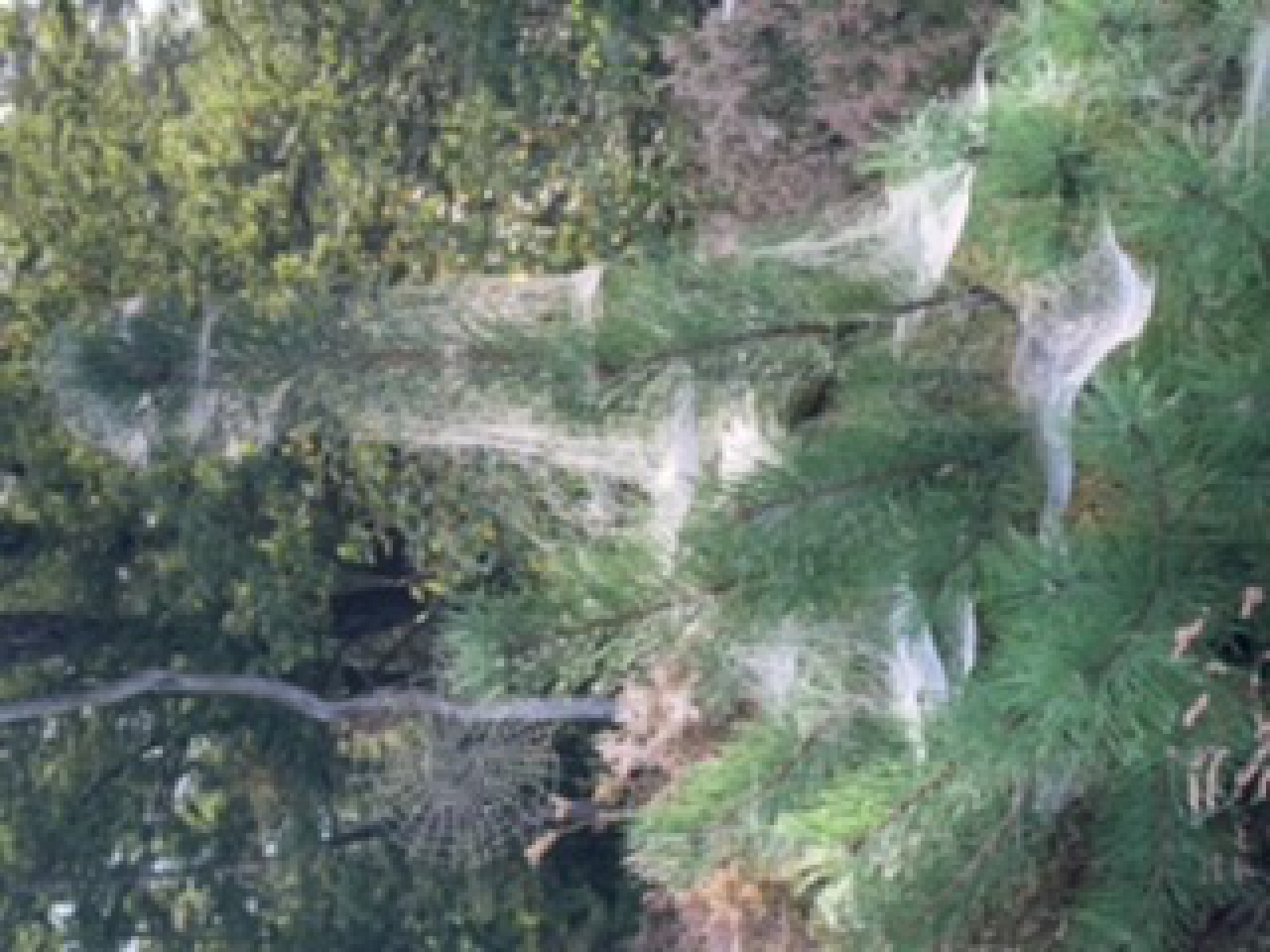 Vanmorgen in de Kaapse bossen zag deze “kerstboom” er prachtig uit door de douw op de spinraggen Net engelenhaar. Zo mooi!