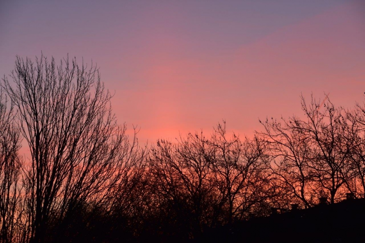 De eerste zonsopkomst, foto genomen ongeveer om kwart voor zeven.