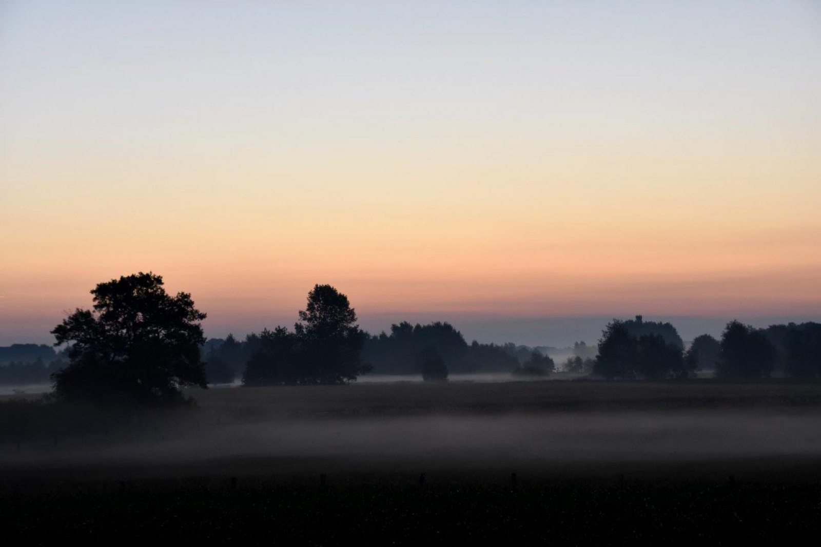 Een zijarm van de Vecht, 's morgens vroeg voor zonsopkomst