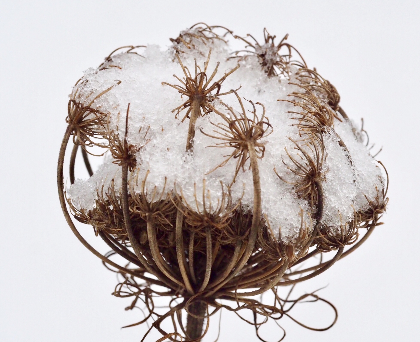 Van harte Sjani met de "Mooiste" de uitgebloeide peen is mooi en geeft een mooi contrast met de sneeuw.