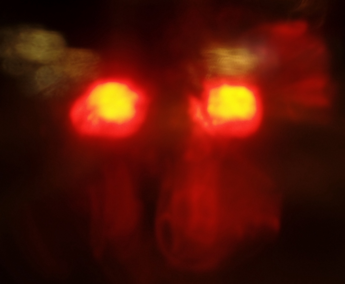 Deze foto is gemaakt vanaf de passagiersstoel van een op de snelweg rijdende auto; een lange sluitertijd gebruikt.