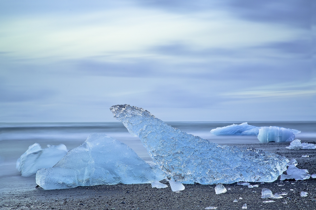 op IJsland is een gebied waar brokstukken ijs door de vloedgolven van de zee op het strand worden geworpen. Daar smelten ze langzaam weg in soms bijzondere vormen. Je kunt daar dieren in herkennen soms.