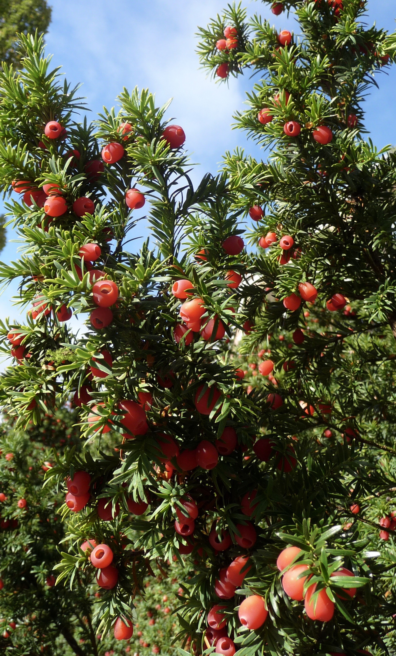Zelden een taxus zo overdadig vrucht zien dragen! Mooi!
