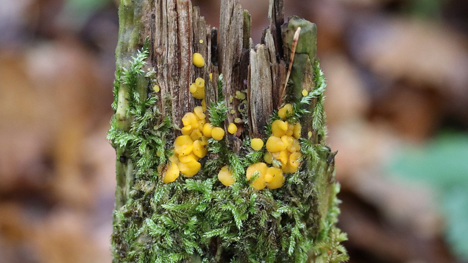 Vruchtlichaam vlak beker- tot schotelvormig, Ø 1-3 mm. Binnenzijde citroen- tot goudgeel. Buitenzijde met wat donkerder rand, goudgeel.