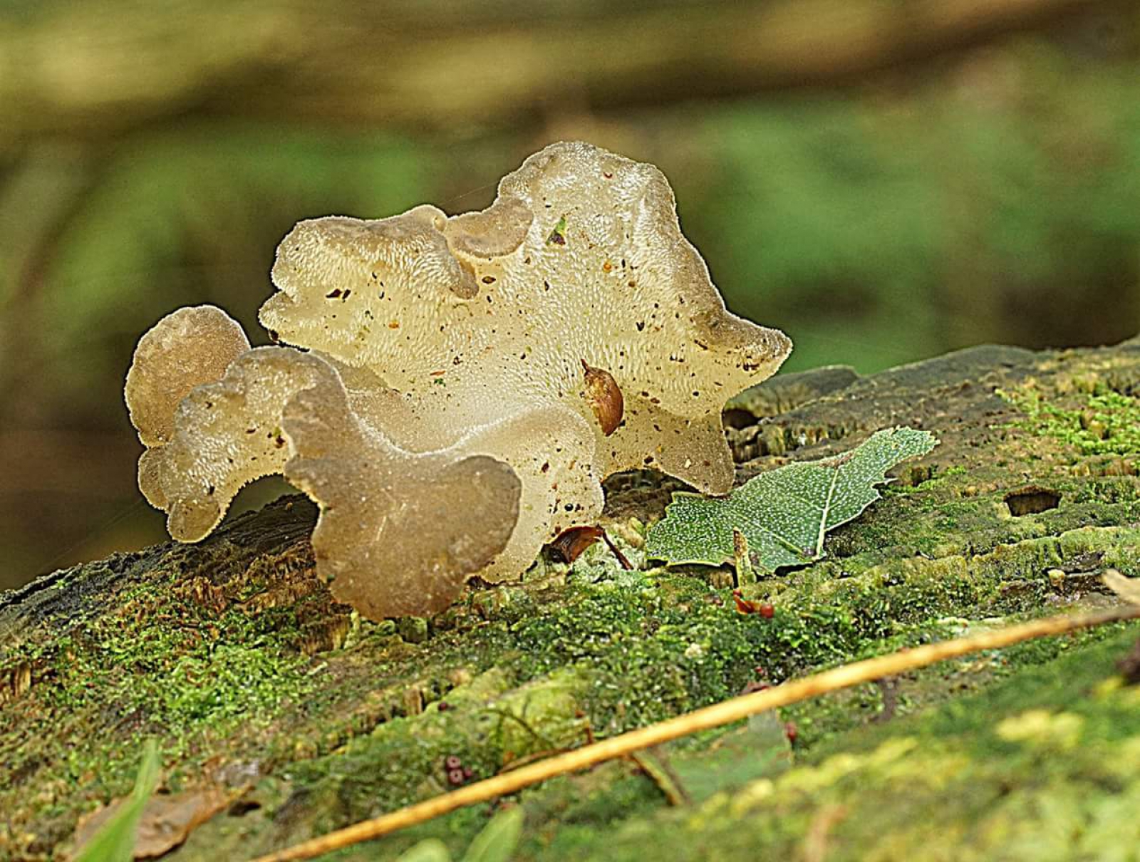 Als ik goed kijk, lijkt het alsof ik stekels zie. Als dat juist is, zou het de stekeltrilzwam kunnen zijn.