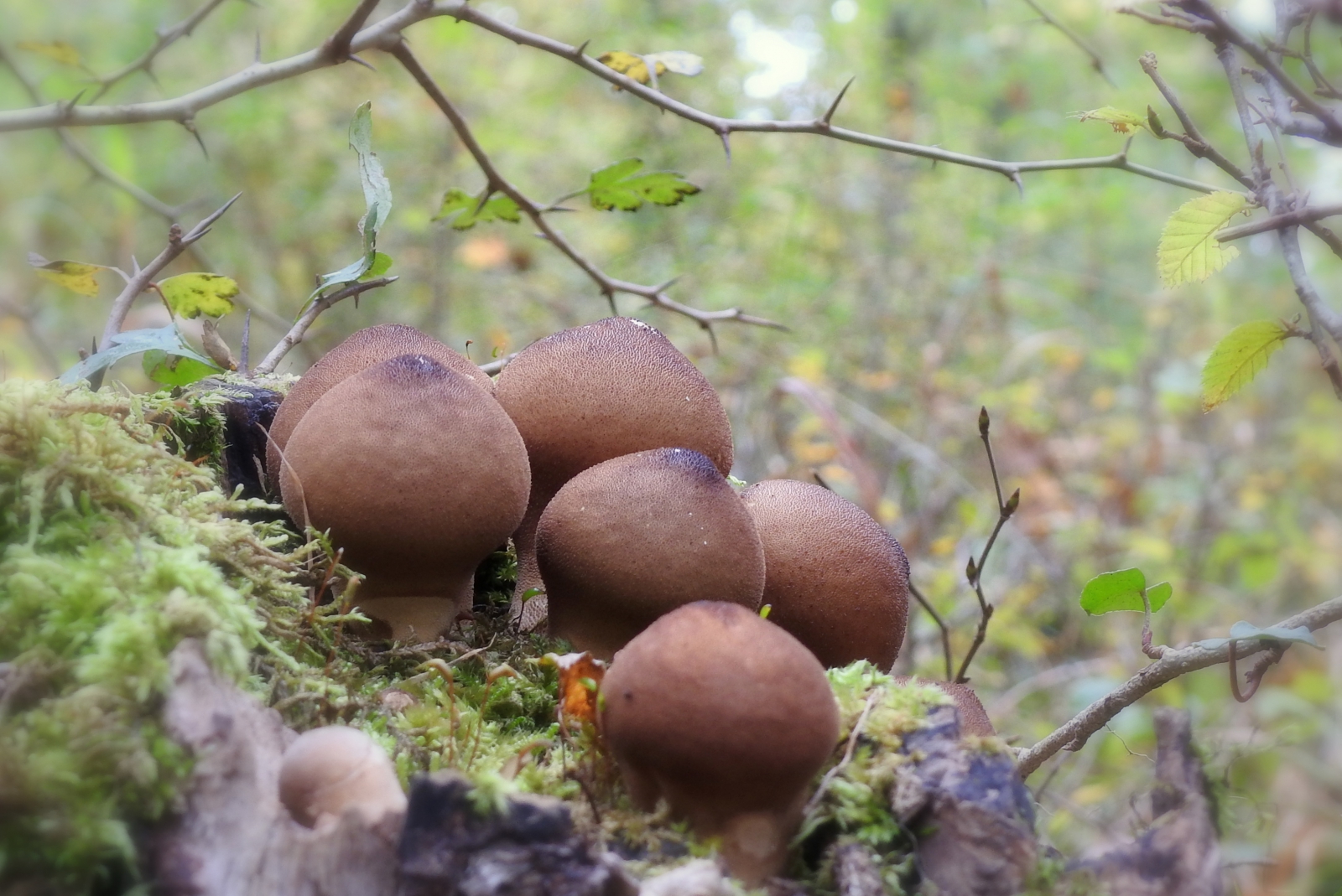 Deze zwam groeit op hout. Wanneer de stuifzwam rijp is ontstaat er bij de donkere vlek een opening waardoor de sporen kunnen ontsnappen.