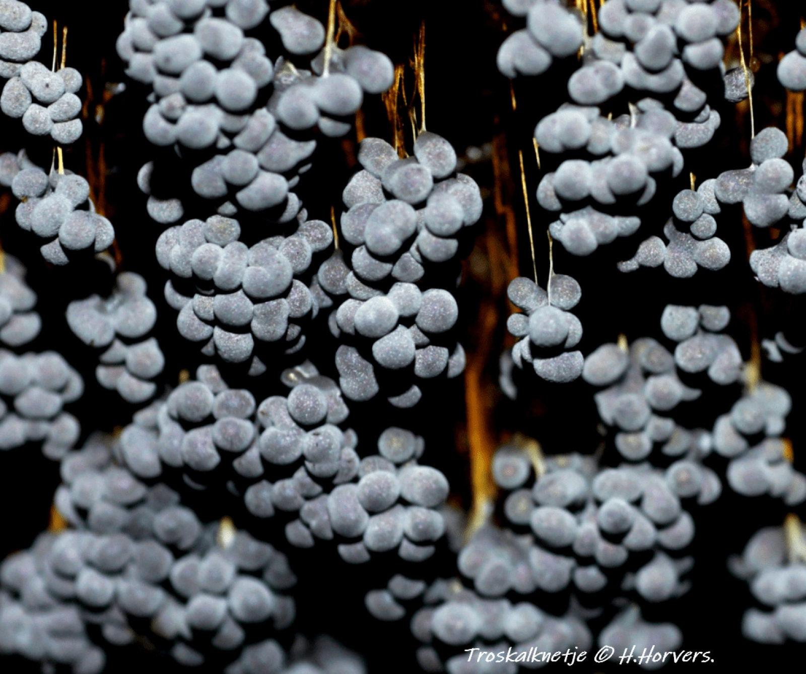 Heel mooi. Altijd bijzonder om de verschillende fases te volgen. In deze fase zijn het net kleine berijpte druiventrosjes.