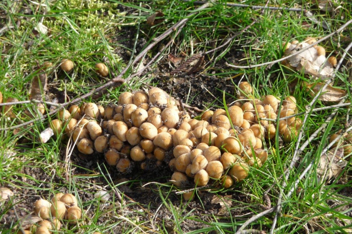 ..paddenstoelen nog steeds in het gras.