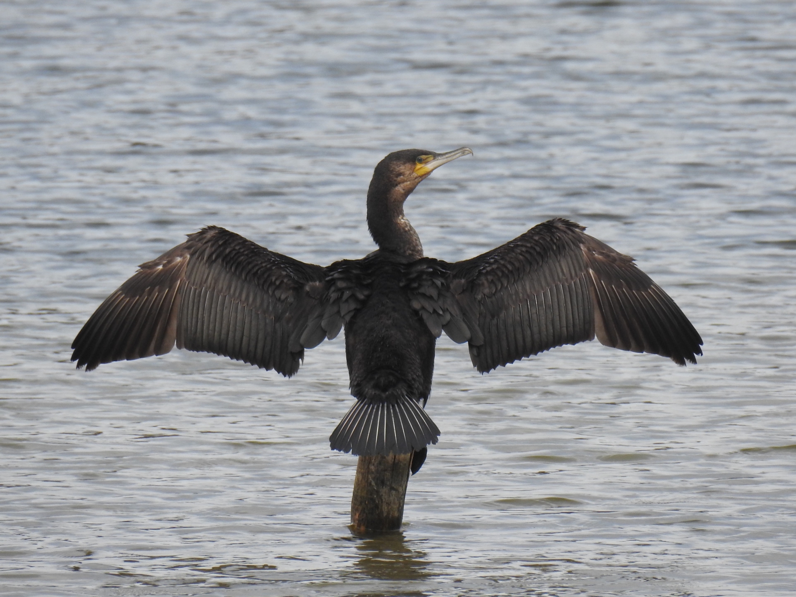 De aalscholver is 80 tot 100 cm lang en heeft een spanwijdte van 121 tot 149 cm.[2] De vogel is vrijwel geheel zwart, maar met een opvallende witte wang en een gele plek op de plaats van de aanhechting van de bek. De snavel is lang en voorzien van een haakvormige punt. In de broedtijd verschijnt er een witte "dijvlek"