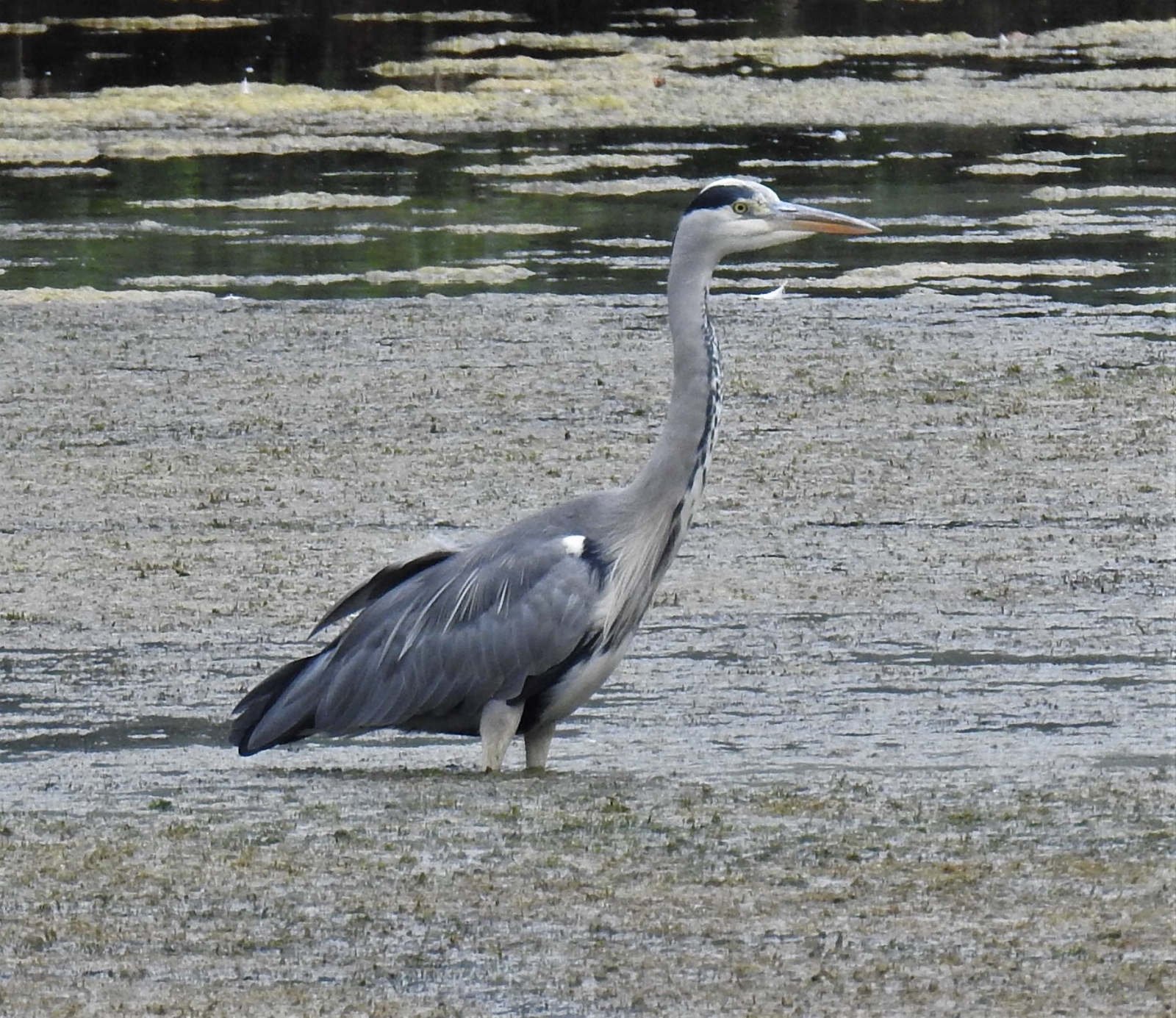 Blauwe reiger staat doodstil in het water om dan plotseling een hap in het water te doen. Zonder resultaat die keer.