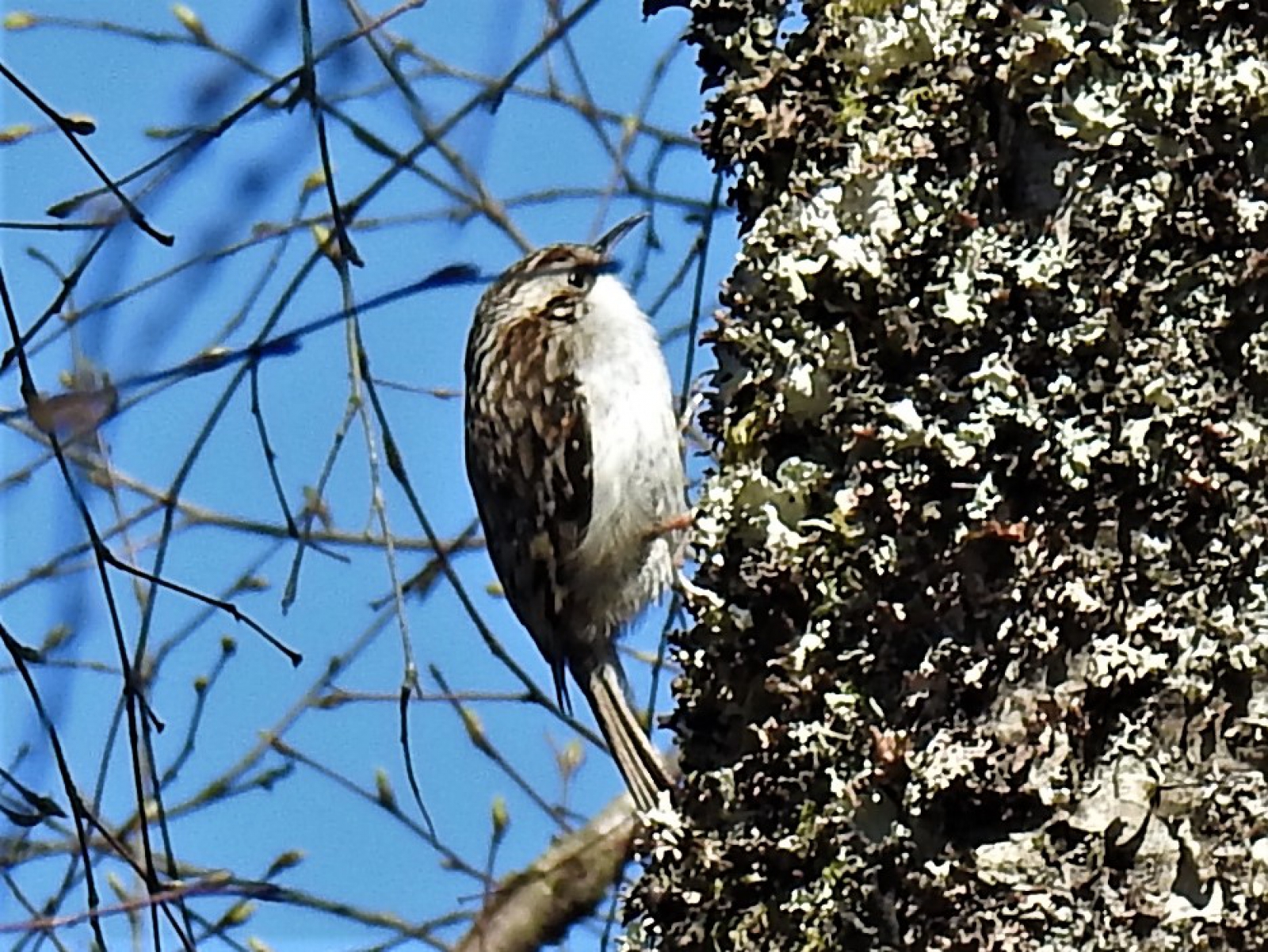 De naar beneden gekromde, spitse snavel is ongeveer twaalf millimeter lang. De onderkant van de vogel is wit; de bovenkant heeft de kleur van boombast en het streepje boven zijn ogen is wit. Het mannetje en het vrouwtje hebben dezelfde kleur. De relatief lange staart wordt gebruikt om zich af te zetten en om te sturen bij het vliegen.