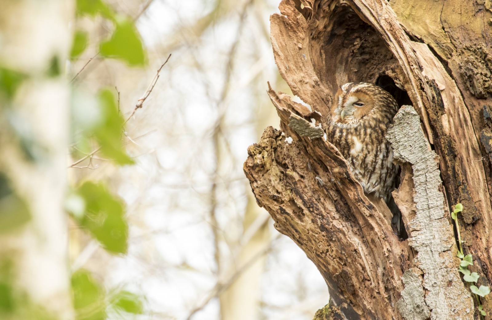 Deze Bosuil doet de spreekwoord "een uiltje knappen" eer aan. Op een zonnige winterse dag met weinig wind zit deze uil op de beste plek in het bos.