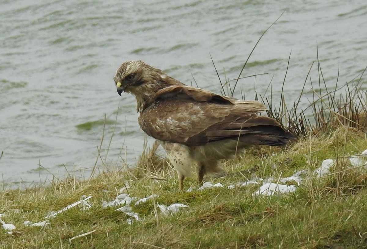 In de harde wind was deze buizerd net klaar met zijn maaltijd.